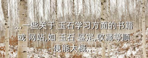 如玉石鑒定、玉石鑒定入門書籍、有寶玉石通鑒書推薦。哪位朋友了解翡翠鑒定書籍請發鏈接給我讓我下載玉石鑒定...你可以從地質出...[詳細]